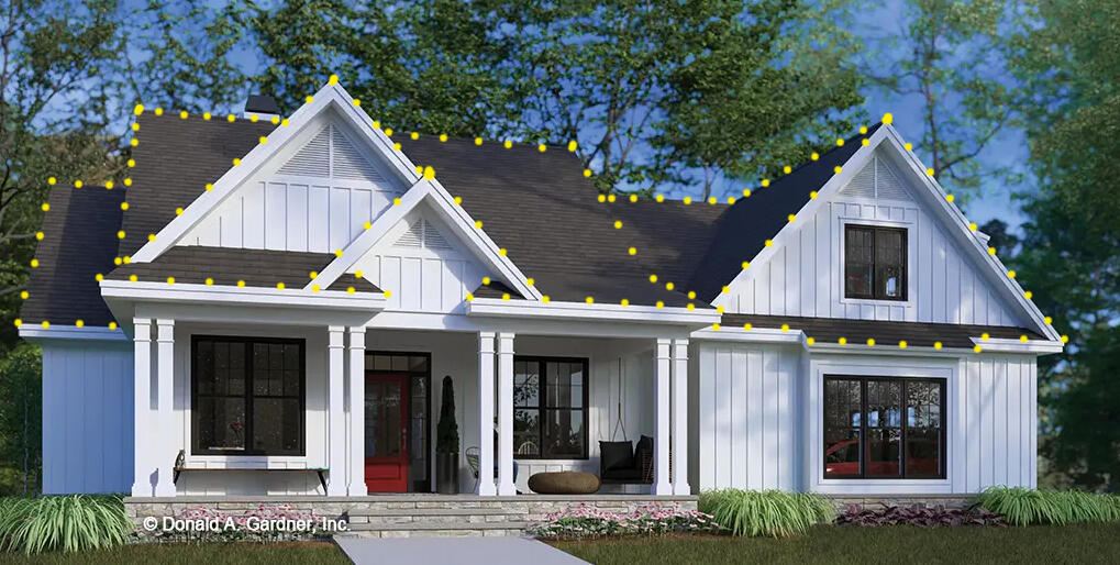 When you request a quote, we’ll create a free mockup image of your home with the lights added as realistically as possible.You can send us a clear photo of the front of your house—or multiple angles if you’d like—and we’ll design a mockup based on your specific job request.Our mockups aren’t just for visualization; they also let you experiment with different color combinations before installation. We can “dot” various bulb colors on your home photo so you can see exactly how each option will look in real life.The example image on the left shows what to expect. We use these mockups both to help you finalize your design and to plan the most efficient setup when we come to install your lights.Contact us today to get started with your free quote and mockup!
